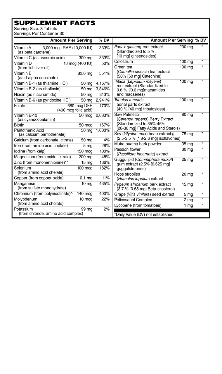 - High potency multivitamin-mineral formula designed for the “active” lifestyle.