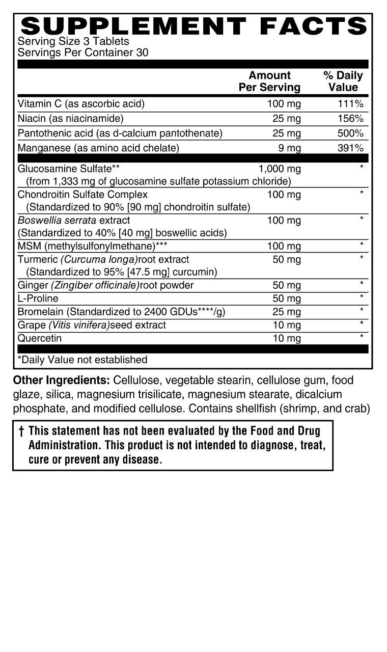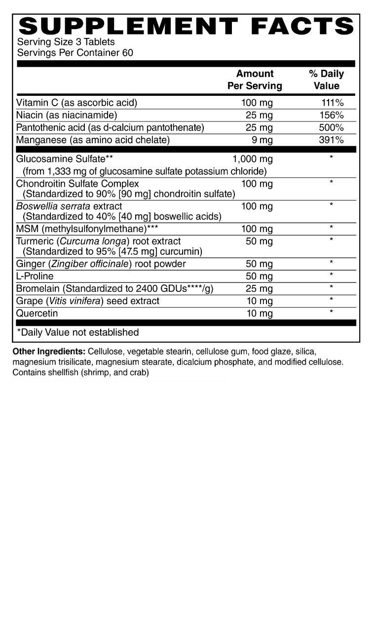 - Vitamin C, manganese, and L-proline are all important cofactors for the synthesis of collagen, the main structural component of joint cartilage.†