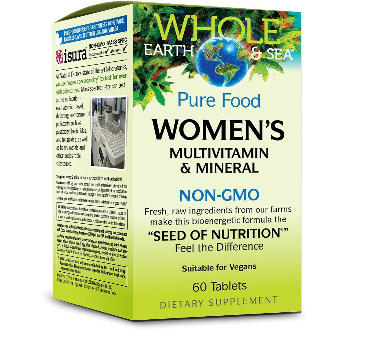 The bioenergetic Whole Earth & Sea formulas are the next generation of whole food supplements, delivering raw, whole food nutrition with real health benefits. The vitamins and minerals come primarily from Farm Fresh Factors and other plant sources such as lichen, algae, kelp, natto, garlic, tomato and sunflower. Many of the nutrient-rich plants are grown on Natural Factors certified organic, non-GMO farms. Food-source nutrients are more easily absorbed and utilized by the human body. Each Whole Earth & Sea formula contains meaningful amounts of each vitamin, mineral and phytonutrient. Each tablet contains 100 grams of Farm Fresh Factors processed using our EnviroSimplex technology. Proprietary EnviroSimplex processing keeps the temperature below 118°F (48°C), resulting in raw nutrition that captures all the vibrant energy and goodness of nature. The vitamins and minerals in the Whole Earth & Sea formulas are chosen for their ability to be easily absorbed and utilized. Whenever possible, food sources such as sunflower (vitamin E), natto (vitamin K2), algae (calcium), lichen (vitamin D3), kelp (iodine) and sprouted garlic (selenium) are used.