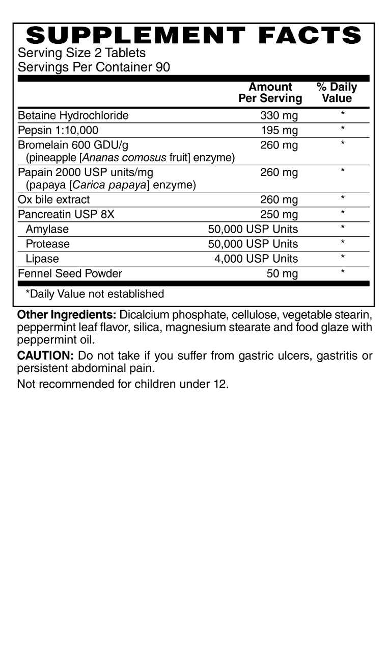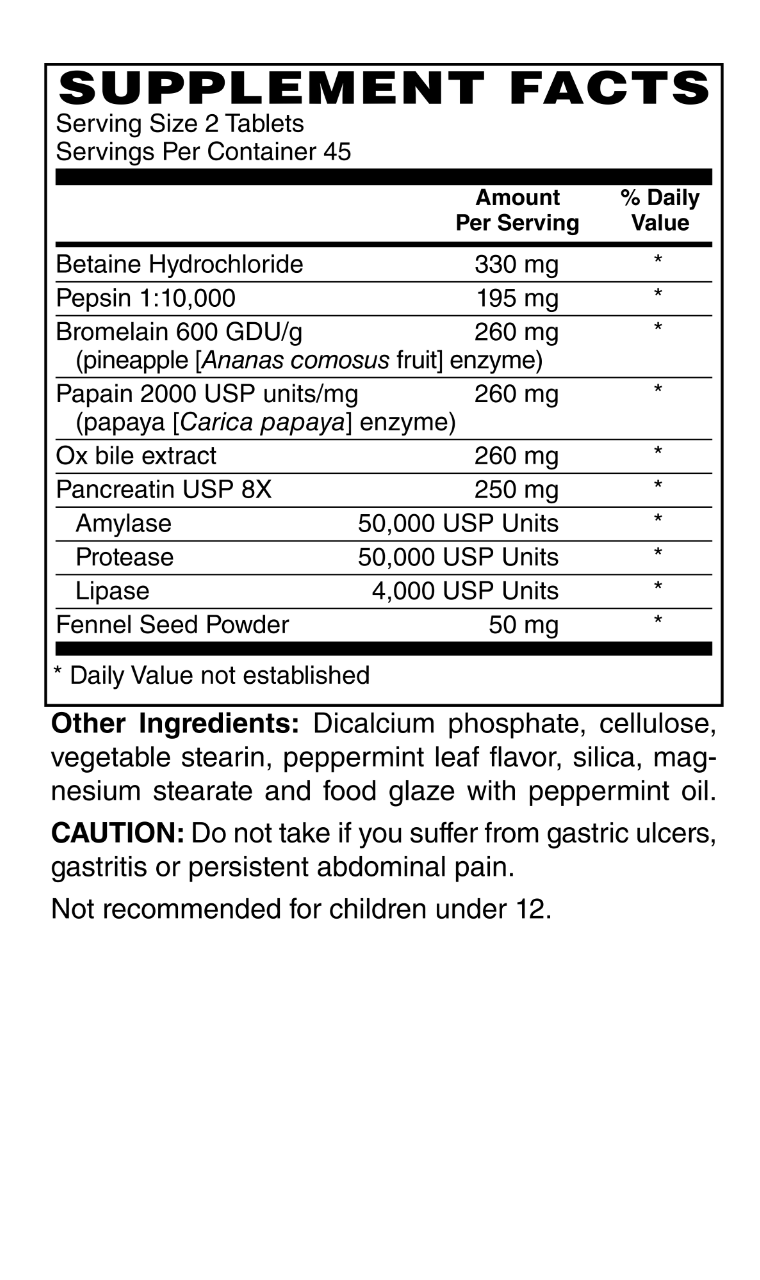 - Provides pepsin, bromelain and papain to help support protein digestion.