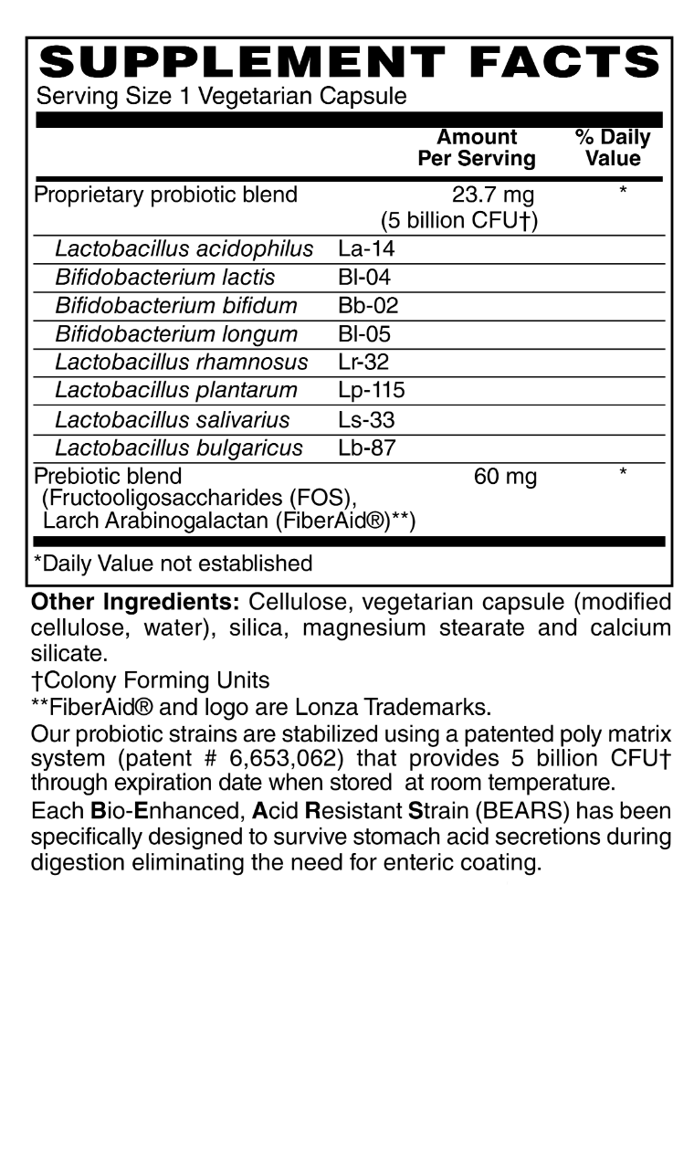 - The BEARS strains in this formula are designed to withstand the acid conditions present in the stomach during digestion without the need for an enteric coating.